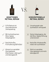 0.1% encapsulated retinal (lab-tested) stimulates collagen synthesis and demonstrably reduces wrinkles and fine lines. Studies show it is even more effective and gentler on the skin than retinol. An innovative encapsulation technology increases stability and enables a controlled and slow release of the active ingredient. This makes the retinal serum even more tolerable and effective.