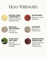 Aloe Barbadensis (Aloe Vera) Leaf Juice*, Squalane**, Pentylene Glycol, Glycerin, Cetearyl Olivate, Butyrospermum Parkii (Shea) Butter*, Kaolin, Sorbitan Olivate, Ceramide NP, Cetearyl Alcohol, Punica Granatum (Pomegranate) Seed Oil*, Tocopherol, Tremella Fuciformis (Snow Fungus) Sporocarp Extract, Crocus Sativus (Saffron) Flower Extract*, Retinal, Helianthus Annuus (Sunflower) Seed Oil, Hydroxyapatite, Aqua, Xanthan Gum, Sodium Citrate, Citric Acid